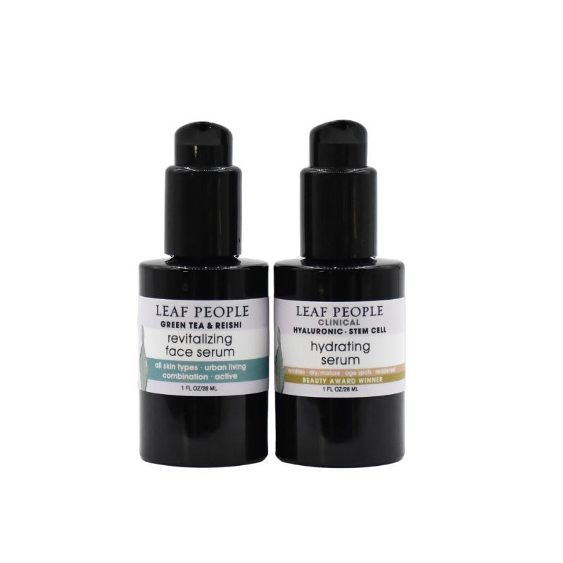 This active duo promotes a clear, bright complexion. Our botanically rich, oil activated, green tea & reishi face serum paired with our stem cell, fulvic mineral and hyaluronic acid serum is designed to: